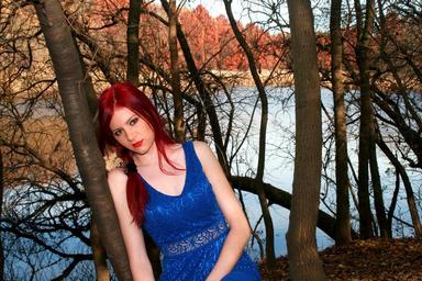 Keywords: girl autumn forest lake red hair beauty vegetation