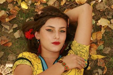 Keywords: girl autumn leaves portrait vegetation beauty seductive yellow