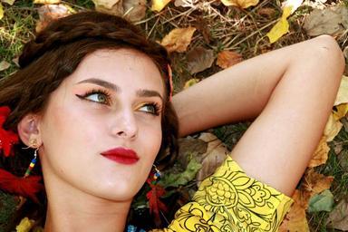 Keywords: girl autumn leaves portrait vegetation beauty seductive yellow