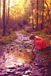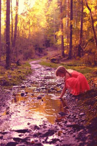 Keywords: girl autumn stream cool