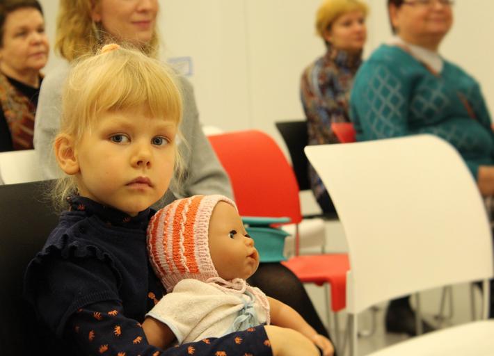Keywords: girl baby doll view toy blonde small baby hair sorrow hypnosis kids family one mood the little girl