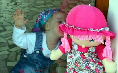 Keywords: girl baby window kiss doll