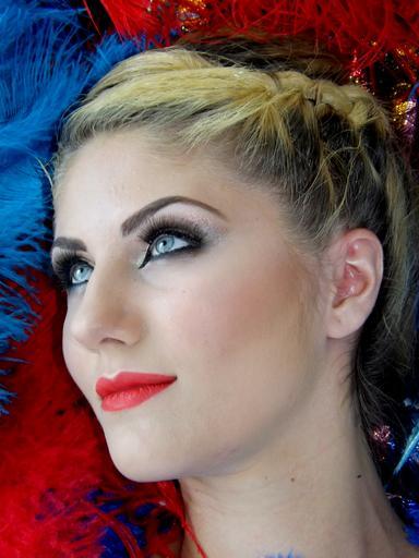 Keywords: girl blond hair blue eyes beauty portrait feather
