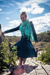 Keywords: girl bridge gym shoes portrait landscape sky clouds jacket scarf nature