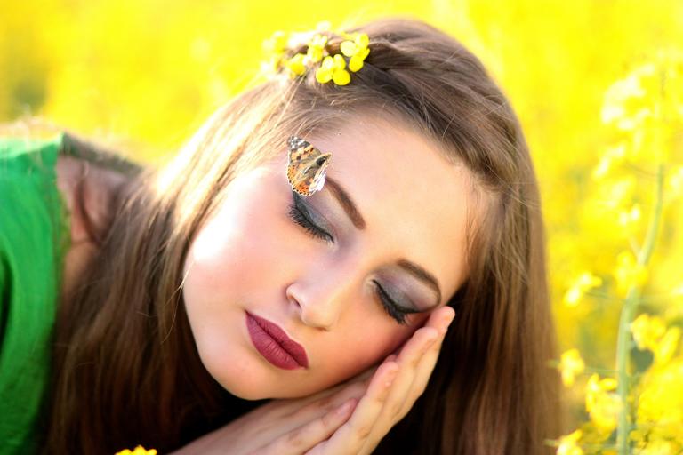 Keywords: girl butterfly dreaming camp flowers yellow beauty nature
