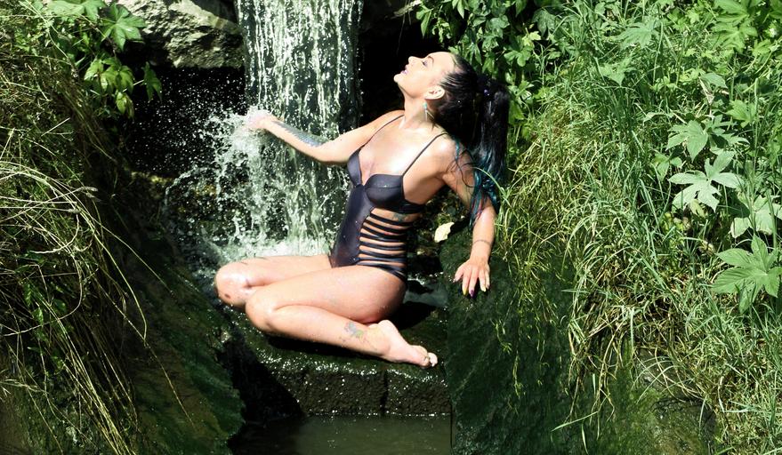 Keywords: girl cascada sensual swimsuit seduction wild water nature beauty