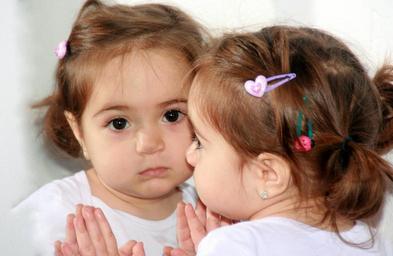Keywords: girl child mirror reflection funny innocence portrait