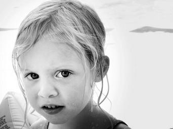 Keywords: girl child portrait eyes black and white wet