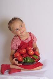 Keywords: girl child vegetables smile agriculture natural vegetable healthy posing plate basket lifestyle pepper tomato