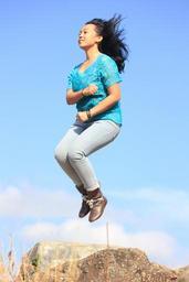 Keywords: girl chinese jump woman happy movement female beautiful posing active human flying hair blue