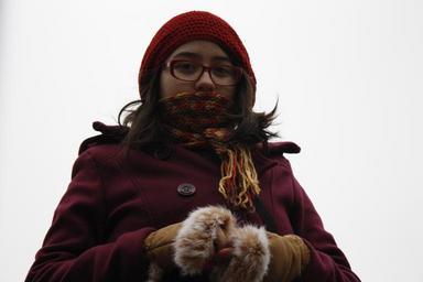 Keywords: girl cold wrap gloves cap lenses red day bundle up