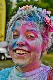 Keywords: girl colorful funny celebration color run festivals happy party festival summer person young pretty pink face portrait female woman