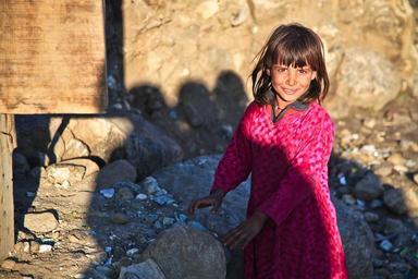 Keywords: girl cute afghanistan person alone child happy laughing dress pink colorful