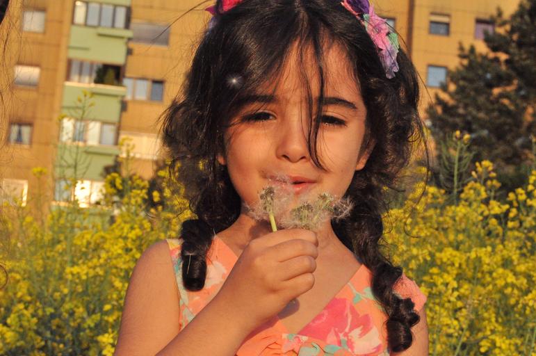 Keywords: girl dandelion nature flower blow