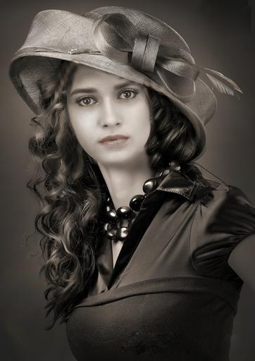 Keywords: girl dark hair hat portrait