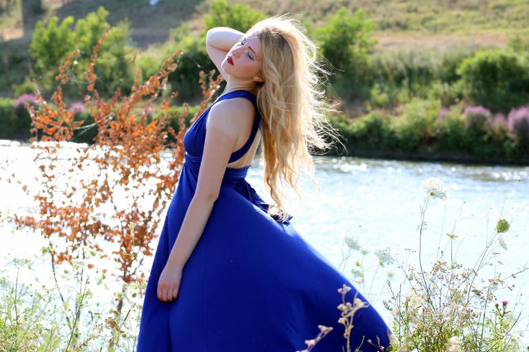 Keywords: girl dress blue lake water beauty