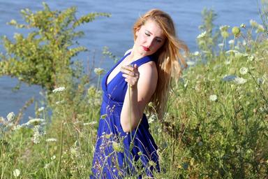 Keywords: girl dress blue lake water beauty
