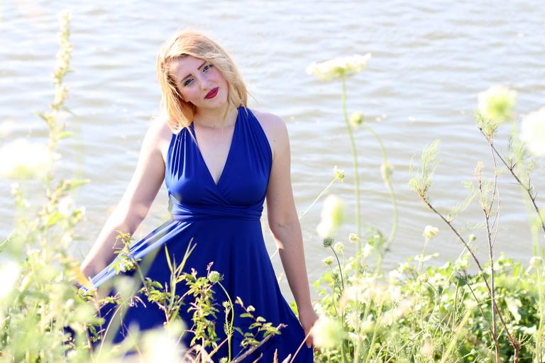 Keywords: girl dress blue lake water beauty