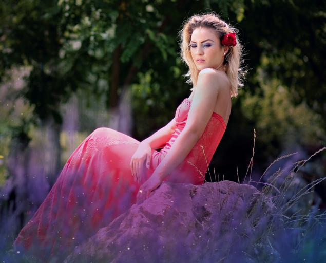 Keywords: girl dress lavender blonde portrait flower red sensual seductive