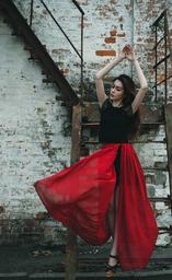 Keywords: girl dress red woman view hands female model wall fashion black dress queen pretty red dress beauty