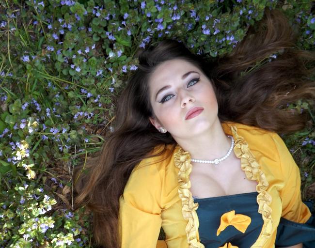 Keywords: girl dress residence nature flowers blonde blue eyes