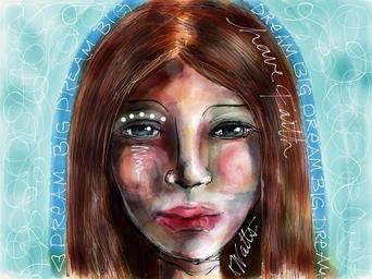 Keywords: girl face woman young female portrait white people person youth brunette teen art funky blue lady head teenager design expression human hair