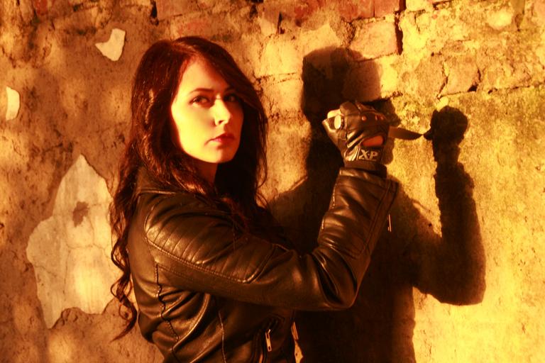 Keywords: girl fashion leather jacket knife black rock beauty brunette seductive