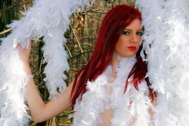 Keywords: girl feather snowflakes white red hair beauty seductive autumn forest