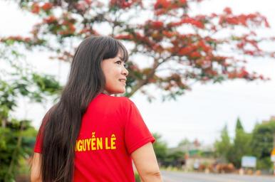 Keywords: girl flower shirt young sunny please field nature red shirts vietnam little
