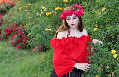 Keywords: girl flowers wreath roses red beauty