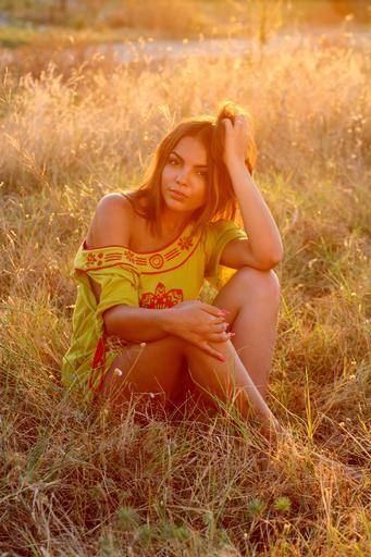 Keywords: girl grass sunset light nature in the evening bfe brown eyes beauty