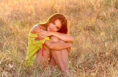 Keywords: girl grass sunset light nature in the evening bfe brown eyes beauty