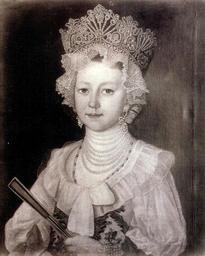 | Keywords: Girl in feast dress by anonymous (19th c., location missed).jpg Девушка в п аздничном костюме XIX в с о игинала неизвестного художника Фотог афия 1914 г Васильев И Васильева С Л - овго одский т адиционный костюм - 2010 Фотог афия 1914 г RusPhoto PD-old PD-RusEmpire Files uploaded by Shakko from various sources Portraits of Russian merchant women folk dress Lost paintings | ||||