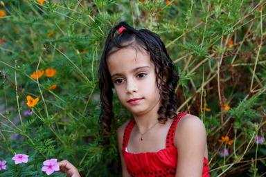 Keywords: girl in the street girl in the garden model child family green grass red dress garden hair beauty childhood face photo girl little girl pose linda natural small