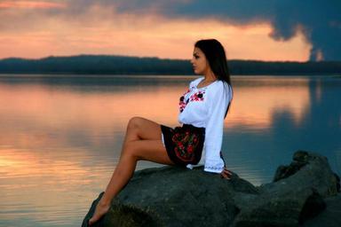 Keywords: girl lake sunset reflection in the evening beauty seductive