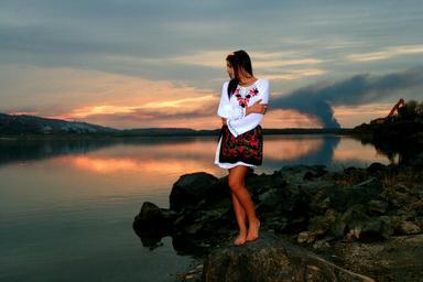 Keywords: girl lake sunset reflection in the evening beauty seductive