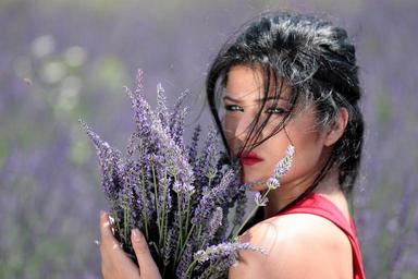 Keywords: girl lavender brunette blue eyes flowers beauty nature