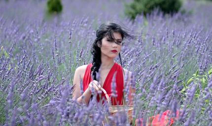 Keywords: girl lavender flowers blue nature beauty