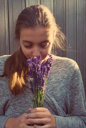 Keywords: girl lavender long hair romantic young in love happy