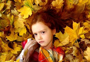Keywords: girl leaves autumn yellow portrait red hair redhead beauty child