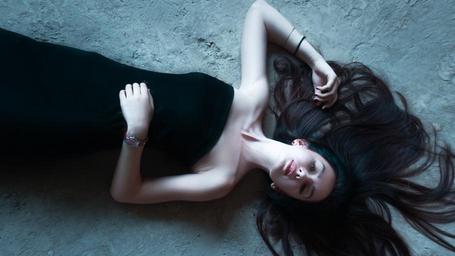 Keywords: girl lying on the floor girl in dress hair on the floor lips land background hand legs hairstyle makeup beautiful person view girl portrait model cosmetics style woman eyes beautiful girl