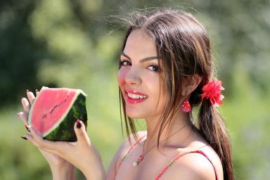Keywords: girl melon red summer beauty nature