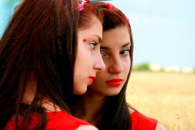 Keywords: girl mirror red reflection nice portrait red lipstick
