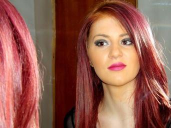 Keywords: girl mirror reflection portrait nice red lipstick makeup