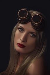 Keywords: girl model goggly portrait steampunk blonde eyes lips person