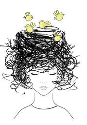 Keywords: girl nest bird hair fly birds branches little bird wild freedom symbiosis tousled head fantasy birds in the head