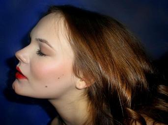 Keywords: girl night portrait profile beautiful leather head beauty women red lipstick