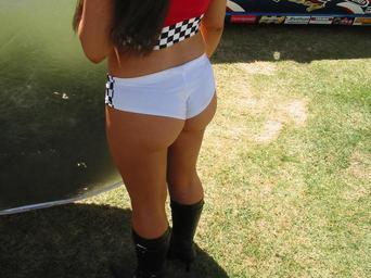 Keywords: Girl on grass.jpg sport Standing young woman seen from back from lower back down focus on buttocks in tight white short shorts She is also wearing black boots Own Vtnl Female buttocks Women with boots Red and white clothing female
