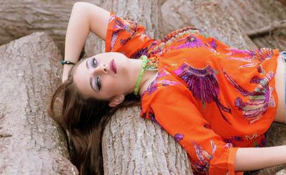 Keywords: girl orange wood timber blue eyes beauty loneliness
