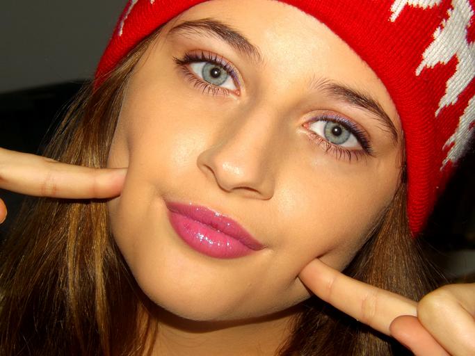 Keywords: girl portrait blue eyes blonde hat red
